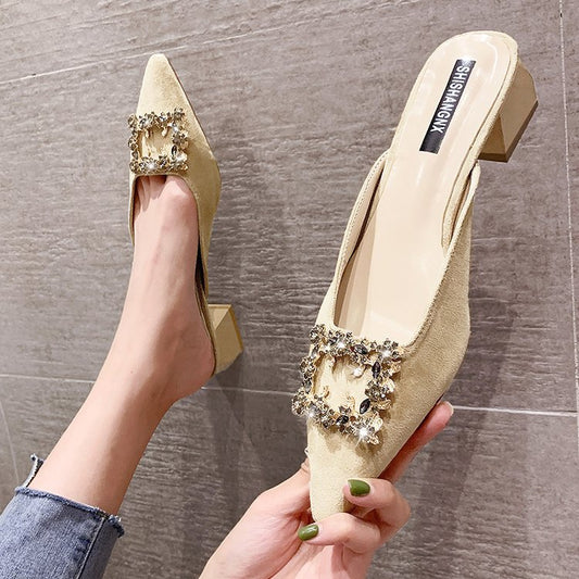 Women's Pointed Thick Heel Suede Sandals And Slippers | Brodtica.com